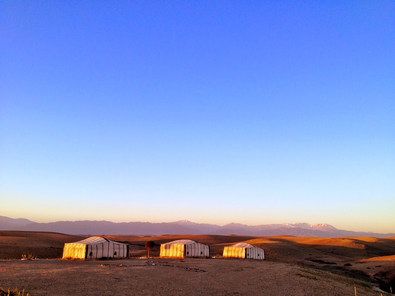 Soloppgangen rundt 6.30 var ekstra vakker. Skal du få fullt utbytte av en tur, bli i to netter. Så får roen virkelig senket seg, og du kan nyte av naturen rundt deg. Her er det mulig å ta seg en joggetur i vakkert landskap med Atlas-fjellene bak, eller bare slappe av med en god bok i campen mens du får hvilepuls.