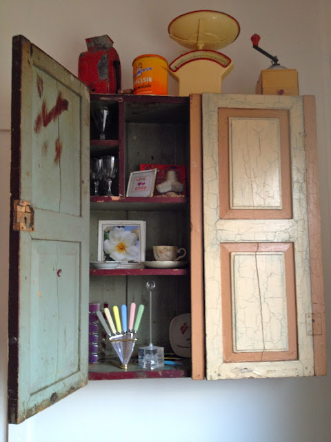 * Et pynteskap i stua er fra 1930-tallet, gitt som bryllupsgave fra en prest. Skapet ble gravd ned under krigen, da det ikke skulle gå tapt da Finnmark ble brent.