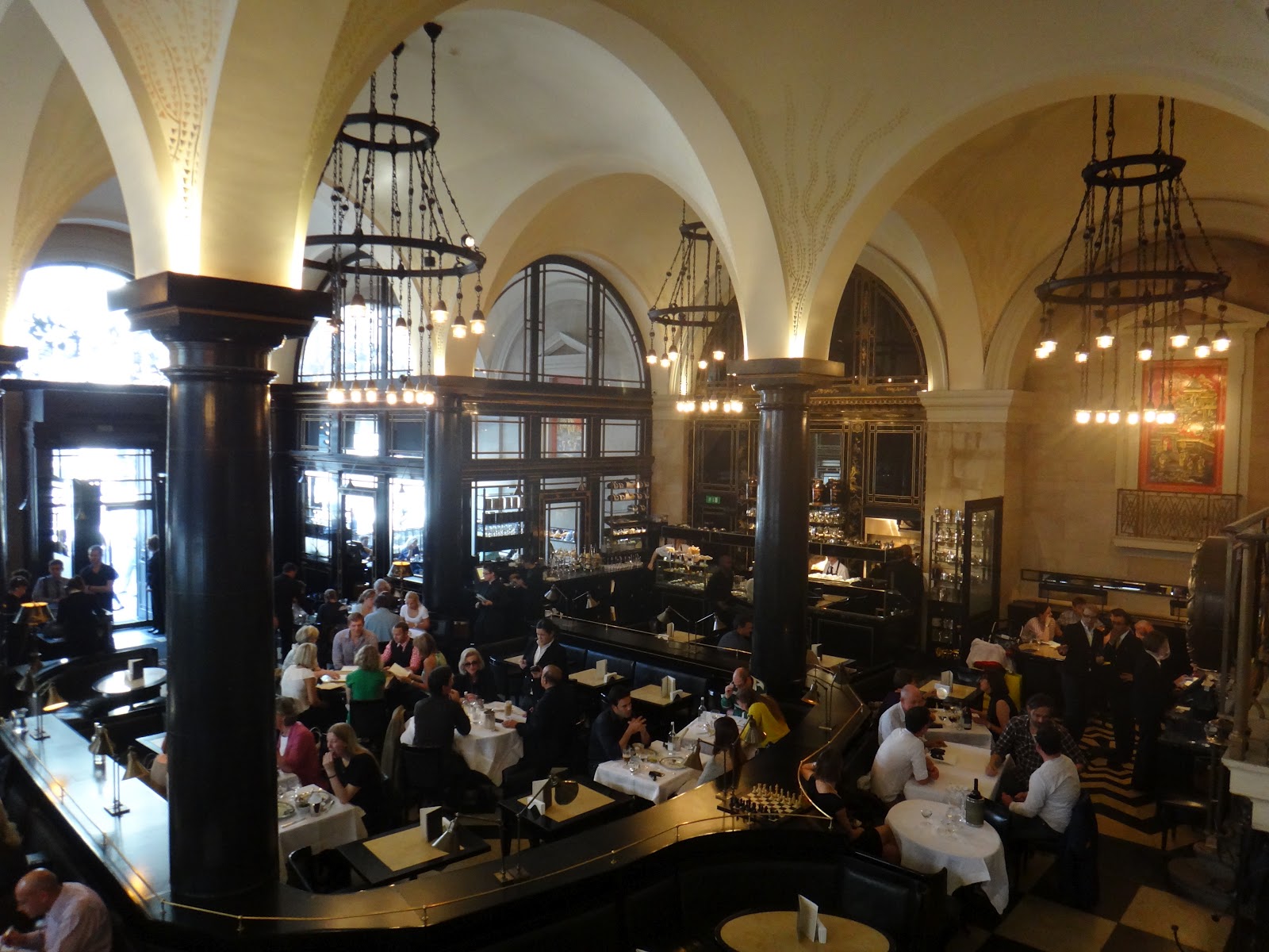 Ser ut som den er fra 1930, men åpnet i 2003. Har byens beste frokost, ryktes det. Jeg testet Afternoon tea. Koster 21 pund, og for det får du mye. Svart eller grønne te varianter, sandwhicher, varme scones, clotted cream, jordbærsyltetøy, sjokoladekake, ostekake, makron, marsipankake og litt til, alt i lekre to,tre-munnfullsbiter. Det var fullt hele tiden mens vi var der, så bestill i god tid.