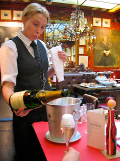 Cafe de Palais må du bare innom, gjerne til lunsj. Tidsriktig fra 1930, du føler du er en del av en annen epoke. De har en god, klassisk fransk meny – ikke så stor – og prøv også husets egen champagne. Meget god og til en rimelig pris, under 300 kroner. Var det 200 mon tro? Jeg spiste ellers tagliatelle med gåselever og morkler. Veldig uvanlig, veldig godt, veldig mektig!