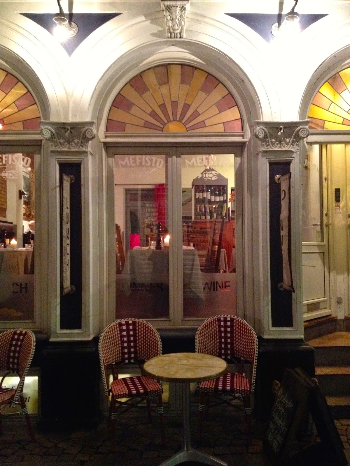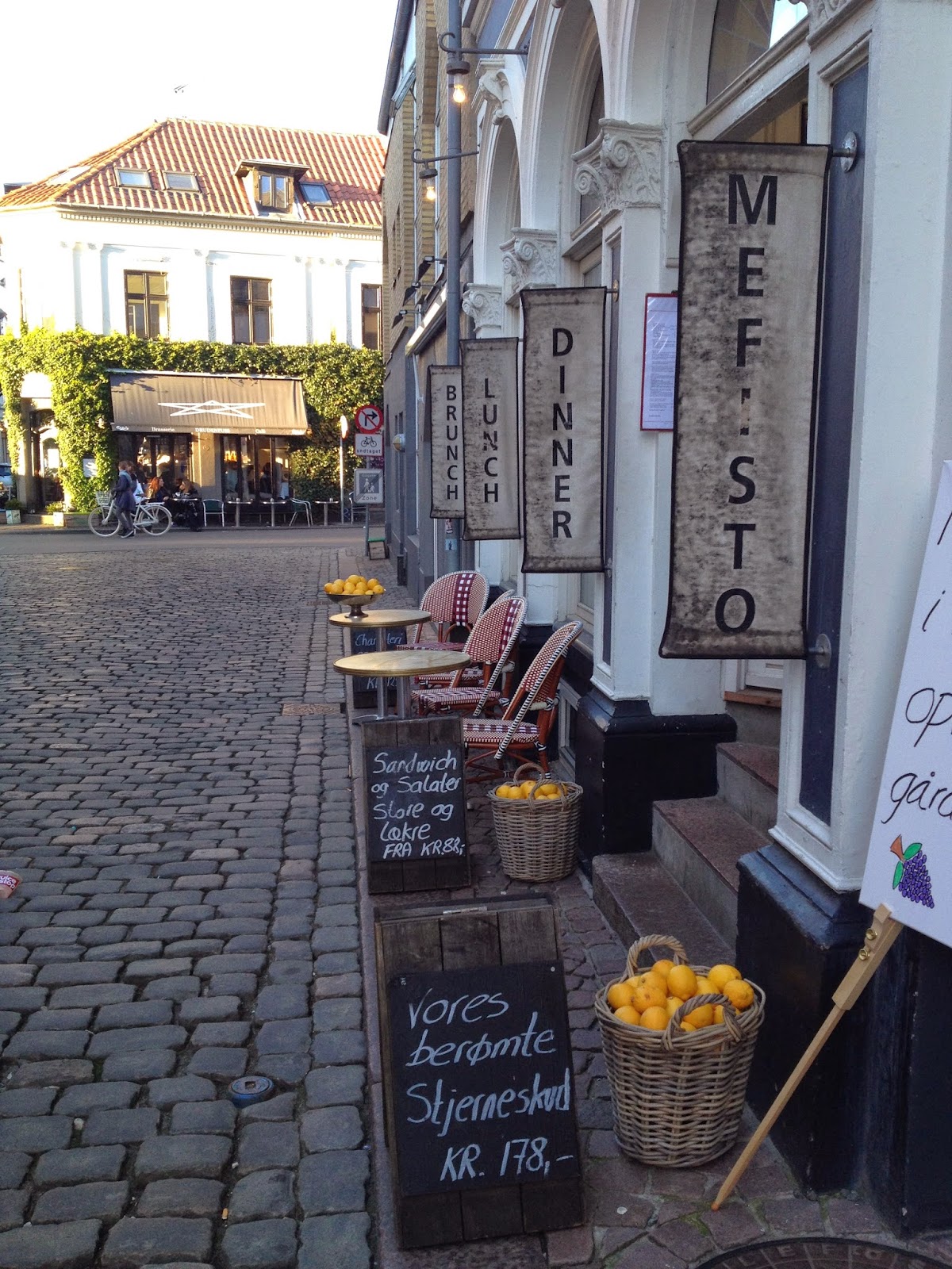 Århus kryr av gode spisesteder. Særlig koselig er det å gå i Latinerkvarteret. To av måltidene ved sist besøk ble inntatt der. Først hos Mefisto ved Volden 28. Med sine koselige skilt, lune bakgårdshage med varmelamper og fine stemning var forventningene på topp. De ble sånn passelig innfridd.