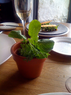 For hva sier du til å få servert et rede med en varm panne, olje laget på høy og et andeegg som du selv skal knekke og steke? Eller at du roter rundt med hendene i en blomsterpotte som viser seg å inneholde gulrøtter og reddik, og det du tror er jord er blant annet hasselnøtter. Når alt dette knases sammen i munnen, er det både morsomt og utrolig. Her sitter vi altså på verdens beste restaurant og spiser fra en terrakottapotte!