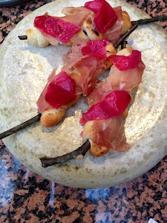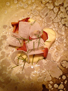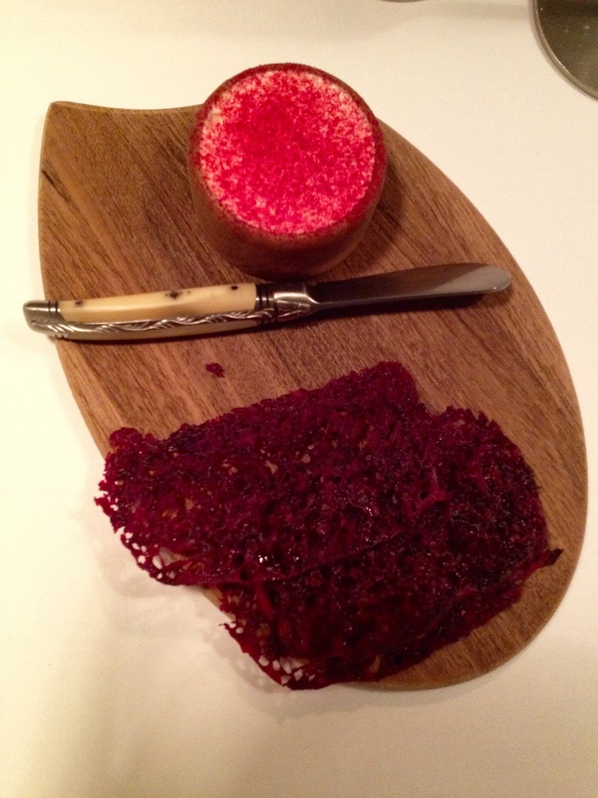 Krondyr med skorzonnerrod, karl jihan, timian og jordskokk. Brombær, hindbær, hvid chokolade, rødbedebrød og creme fraiche