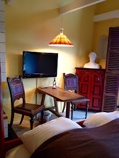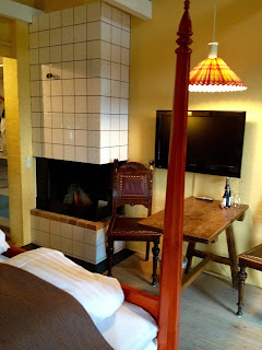 Jeg møtte hans kunster første gang der, og du kan lese hans historie i Ebeltoftinnlegget, fra den berømte Molskroen. Utenfra ser bygningen noe gul og kjedelig ut, og ikke det du forbinder med en koselig restaurant på den danske landsbygda. Inne er stemningen derimot lun som en dansk leverpostei. 8 av hotellrommene har peis på rommet, det er varme på badetgulvet og på mitt rom var det også badekar. Fine produkter var det også. Koselig seng, fine antikviteter og en noe skummel dame i ramme som voktet over sengen. Minibar på rommet er alltid fint, for oppbevaring av egne varer om ikke annet. Noe trafikk hører du fra klokken 7, men omtenktsomt nok ligger det øreplugger på nattbordet. Du er nok uansett så mett av mat og vin at du kan sove gjennom det meste.
