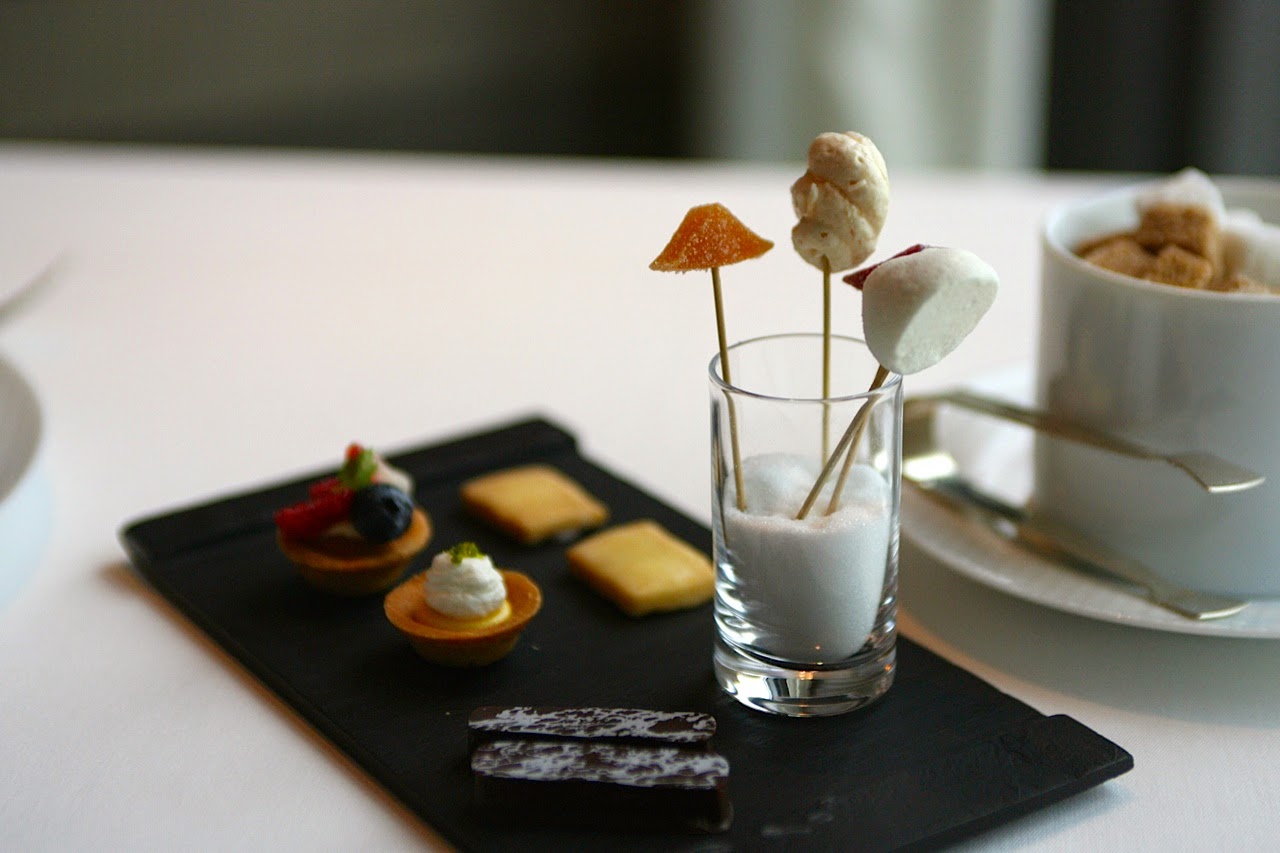 Det skadet heller ikke at maten smakte fortreffelig, at vi fikk det du ser på bildet som ekstrasnop til kaffen eller at kelneren kom med egen krakk til kameraet mitt. «Et slikt fint Canon burde ikke ligge på gulvet», mente han.